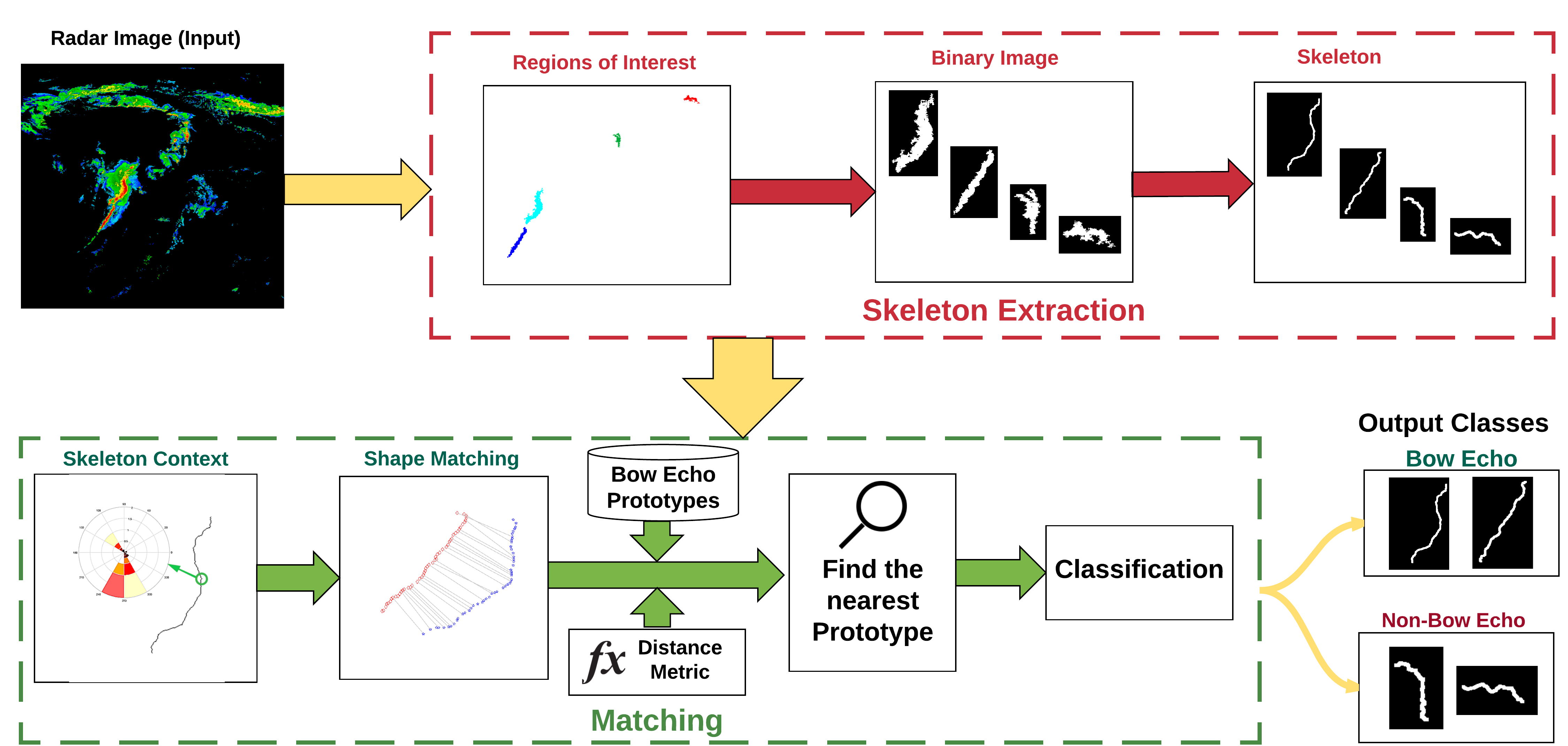 In this project we use radar images and apply a novel shape matching technique, along with machine learning algorithms, in order to detect bow echo patterns, which are associated with severe weather conditions.
